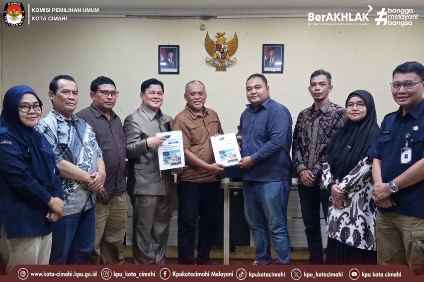 CIMAHI - Jajaran Komisi Pemilihan Umum (KPU) Kota Cimahi melaksanakan audiensi dengan Komisi I DPRD Kota Cimahi sebagai bagian dari upaya memperkuat sinergi antara lembaga penyelenggara pemilu dan lembaga legislatif daerah, Selasa (14/10/2025). Kedatangan jajaran KPU Kota Cimahi diterima langsung oleh Ketua DPRD Kota Cimahi, Wahyu Widyatmoko, beserta Anggota DPRD Kota Cimahi, Bambang Purnomo, di ruang rapat DPRD Kota Cimahi. Audiensi tersebut menjadi wadah komunikasi dan koordinasi kelembagaan dalam rangka memperkuat pelaksanaan tugas dan fungsi masing-masing lembaga, khususnya dalam penyelenggaraan Pemilu dan Pilkada di Kota Cimahi. Dalam pertemuan tersebut, KPU Kota Cimahi menyampaikan berbagai hal terkait evaluasi pelaksanaan Pemilu Serentak 2024, termasuk pembahasan mengenai tahapan, dinamika lapangan, serta rencana strategis menuju pelaksanaan Pilkada serentak mendatang. Kedua pihak juga berdiskusi mengenai sinergi kebijakan dan dukungan kelembagaan guna meningkatkan kualitas demokrasi di tingkat daerah. Dalam suasana penuh keakraban dan kekeluargaan, kegiatan audiensi diakhiri dengan penyerahan plakat dan buku laporan pelaksanaan Pemilu dan Pilkada oleh KPU Kota Cimahi kepada Ketua DPRD Kota Cimahi. Penyerahan tersebut menjadi simbol komitmen KPU Kota Cimahi terhadap prinsip akuntabilitas, transparansi, dan keterbukaan informasi publik. KPU Kota Cimahi menyampaikan apresiasi dan terima kasih atas dukungan DPRD Kota Cimahi yang selama ini telah berperan aktif dalam memperkuat ekosistem demokrasi di daerah. Melalui sinergi dan kolaborasi antar lembaga, KPU Kota Cimahi berkomitmen untuk terus mewujudkan penyelenggaraan Pemilu yang demokratis, jujur, profesional, dan berintegritas.(dsp) ....