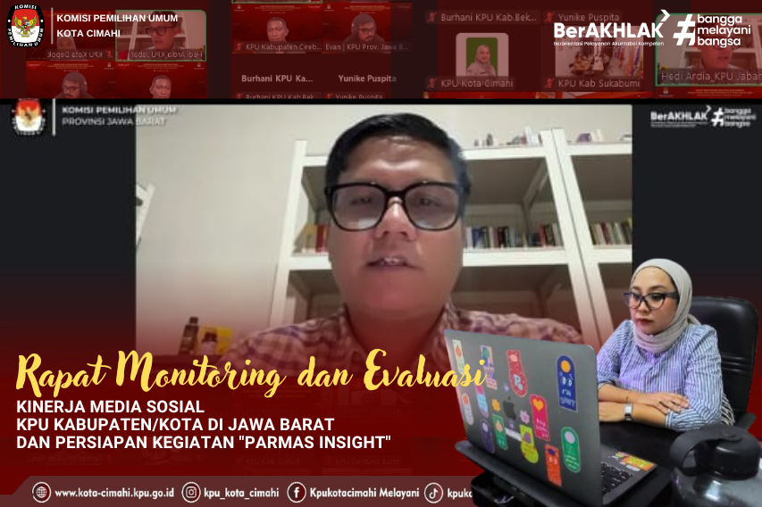 CIMAHI - Komisi Pemilihan Umum (KPU) Kota Cimahi mengikuti kegiatan Rapat Monitoring dan Evaluasi Kinerja Media Sosial KPU Kabupaten/Kota dan Persiapan Kegiatan Parmas Insight yang diselenggarakan oleh KPU Provinsi Jawa Barat, Kamis (2/10/2025).