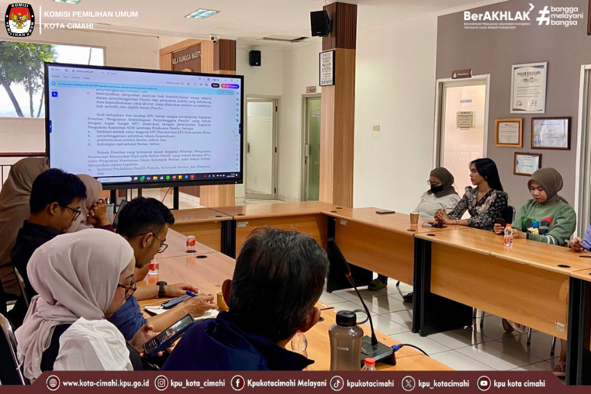 KPU Kota Cimahi mengadakan kegiatan NgaCa, Pada Hari Kamis Tanggal 08 Januari 2026 bertempat di Ruang Rapat Lantai 3 Kantor KPU Kota Cimahi. Pada kesempatan ini membahas mengenai PKPU Nomor 5 Tahun 2025 tentang Rencana Strategis Komisi Pemilihan Umum Tahun 2025-2029.