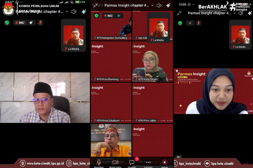 CIMAHI - Ketua Divisi Sosialisasi, Pendidikan Pemilih, Partisipasi Masyarakat dan SDM KPU Kota Cimahi La Media Media serta Kasubbag Parmas dan SDM Yusti Rahayu mengikuti kegiatan Parmas Insight Chapter #11 yang diselenggarakan oleh KPU Provinsi Jawa Barat secara daring pada Rabu (7/1/2026).