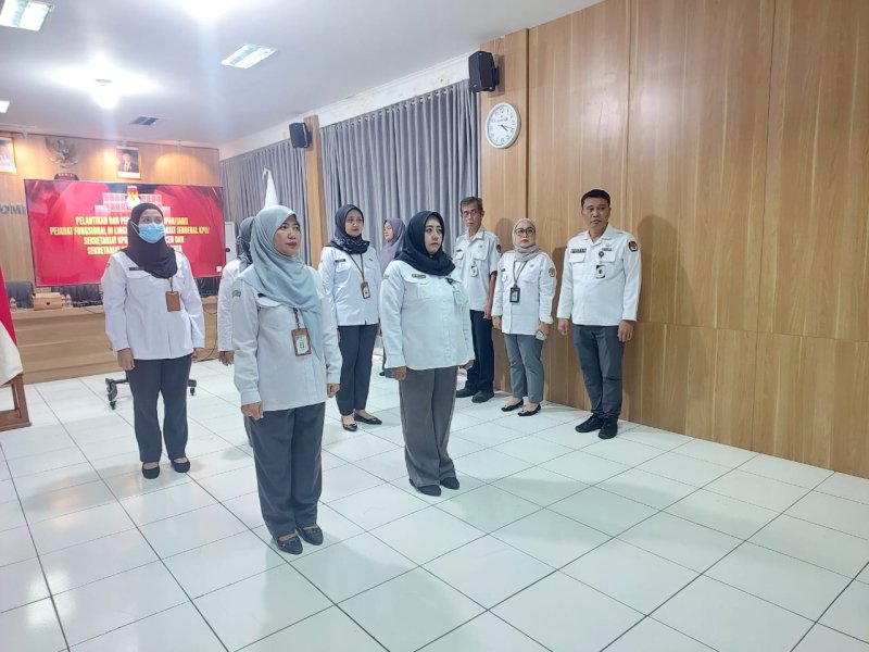 Pengambilan Sumpah/Janji Pejabat Fungsional di Lingkungan Sekretariat Jenderal KPU, Sekretariat KPU Provinsi dan Sekretariat KPU Kabupaten/Kota yang dipimpin oleh Bernad Dermawan Sutrisno sebagai Sekretaris Jenderal KPU RI sesuai dengan surat dari KPU RI Nomor 63/SDM.09-Und/04/2026 tanggal 21 Januari 2026.