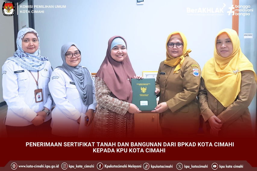 Penyerahan sertifikat tersebut merupakan bagian dari proses penertiban dan pengamanan aset milik pemerintah daerah yang digunakan oleh KPU Kota Cimahi. Dengan diterimanya sertifikat tanah dan bangunan ini, status legalitas aset yang digunakan oleh KPU Kota Cimahi menjadi lebih jelas dan tertib secara administrasi.
