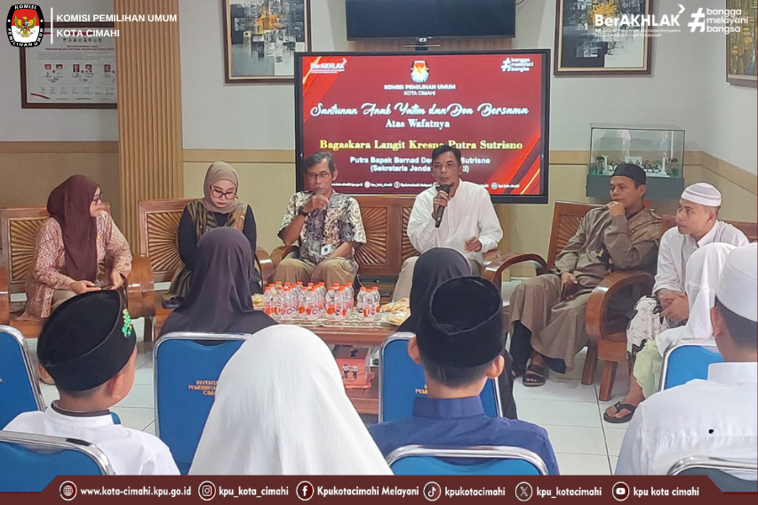 CIMAHI - Dalam rangka menyambut Bulan Suci Ramadhan, KPU Kota Cimahi melaksanakan kegiatan Santunan Anak Yatim yang dirangkaikan dengan doa bersama atas wafatnya Ananda Bagaskara Langit Kresna Putra Sutrisno, putra dari Sekretaris Jenderal KPU RI, Bernad Dermawan Sutrisno, pada Jumat (6/2/2026).