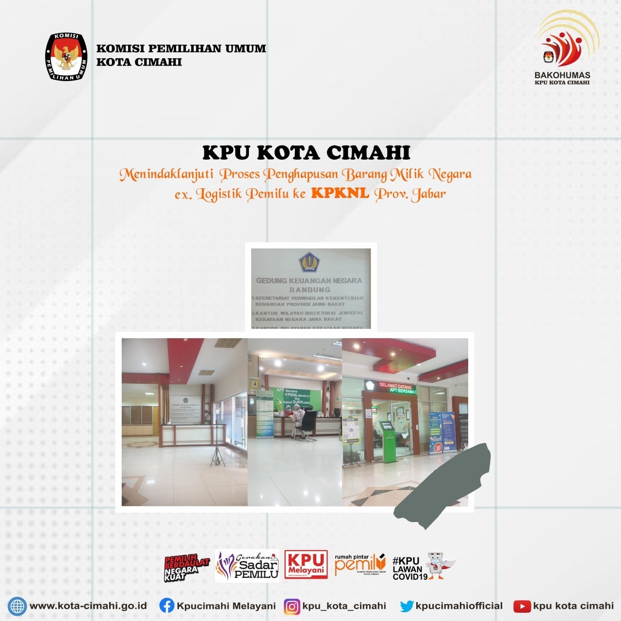 Jumat, 22 Oktober 2021, KPU Kota Cimahi telah menyerahkan Hardcopy Dokumen Berkas untuk proses lelang kepada KPKNL (Kantor Pelayanan Kekayaan Negara dan Lelang), adapun yang menyerahkan berkas tersebut adalah Bapak Vivid Firmawan (Kassubag Umum), Bapak Agus Kurnianto (Kassubag Program dan Data) dan Ibu Fidalina (Staf Bagian Umum). Penyerahan berkas dokumen (hardcopy) tersebut sebagai tindaklanjut dari Surat Edaran Komisi Pemilihan Umum Republik Indonesia No. 1560/TU.04.2-SD/04/SJ/XI/2019, perihal Ijin Pemusnahan Surat Suara Pemilu Tahun 2019 dan Surat Edaran Komisi Pemilihan Umum Republik Indonesia No. 1570/PP.08.SD/07/SJ/XI/2019 perihal Tata Kelola Logistik Pasca Pemilu Tahun 2019 serta Surat dari Arsip Nasional Republik Indonesia No. B-KN..03/3/2020 perihal Persetujuan Pemusnahan. Informasi terkait dengan pelaksanaan proses lelang tersebut KPKNL akan menginformasikan kepada Kantor Komisi Pemilihan Umum Kota cimahi sesuai dengan jadwal pelelangannya hari, tanggal, bulan dan jam pelelangan. red