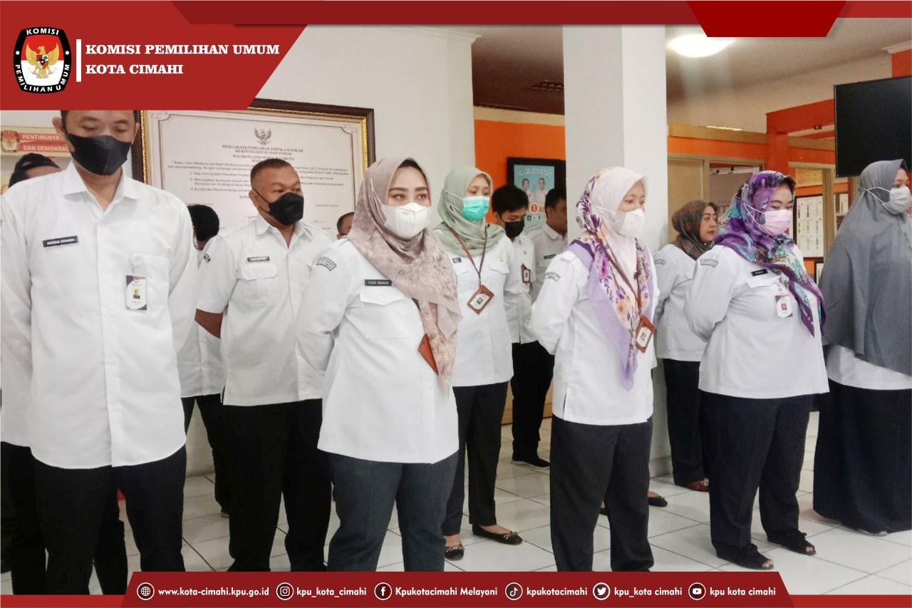 Cimahi, kota-cimahi.kpu.go.id - Memasuki tahapan verifikasi partai politik calon peserta Pemilu, seluruh jajaran KPU, khususnya KPU Kabupaten/Kota akan menghadapi tugas berat yang harus dapat dilaksanakan dengan sebaik-baiknya. Hal penting yang harus dilakukan adalah untuk selalu mentaati tata cara, prosedur dan mekanisme, yang telah ditentukan. Hal ini ditegaskan oleh Ketua Divisi Hukum dan Pengawasan KPU Kota Cimahi Sri Suasti, saat menjadi pembina apel pagi di Lingkungan KPU Kota Cimahi, Senin 15 Agustus 2022, yang dilaksanakan di Lantai 1 Kantor KPU Kota Cimahi dan dihadiri oleh jajaran Komisioner dan Sekretariat KPU Kota Cimahi. Tahapan verifikasi administrasi partai politik calon peserta Pemilu, membutuhkan ketelitian dan kecermatan dalam bekerja. Untuk itu, dibutuhkan pemahaman yang baik mengenai prosedur kerjanya. Kelalaian dalam mentaati prosedur, mekanisme, dan aturan yang berlaku akan berdampak pada potensi timbulnya pelanggaran administrasi, yang tentu saja penyelesaiannya akan sangat menyita waktu dan perhatian. Untuk menghindari itu, Sri menegaskan, pelaksanaan setiap tahapan sudah diatur mekanisme, prosedur dan aturannya sedemikan rupa oleh KPU RI. “Tugas kita adalah untuk mentaati semua tata kerja, prosedur, mekanisme dan aturan yang telah ditetapkan”, ungkapnya. Pada kesempatan itu, Sri juga mengingatkan untuk menyiapkan segala sarana dan prasarana termasuk ruangan yang nyaman, untuk bekerja. Agar para operator yang nanti melakukan verfikasi administrasi dapat bekerja dengan nyaman dan fokus. (*) (HumasDevi/edWina)