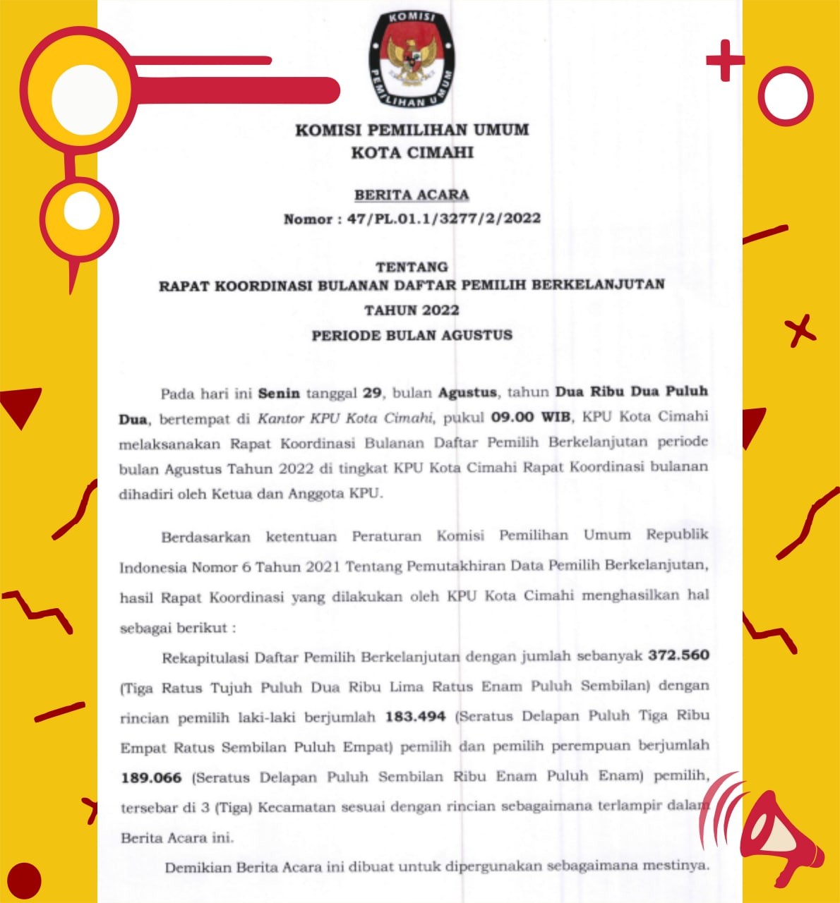 Rekap Daftar Pemilih Berkelanjutan Periode Agustus Senin, 29 Agustus 2022 09:00 421 Unduh Selengkapnya Disini Baca Selengkapnya